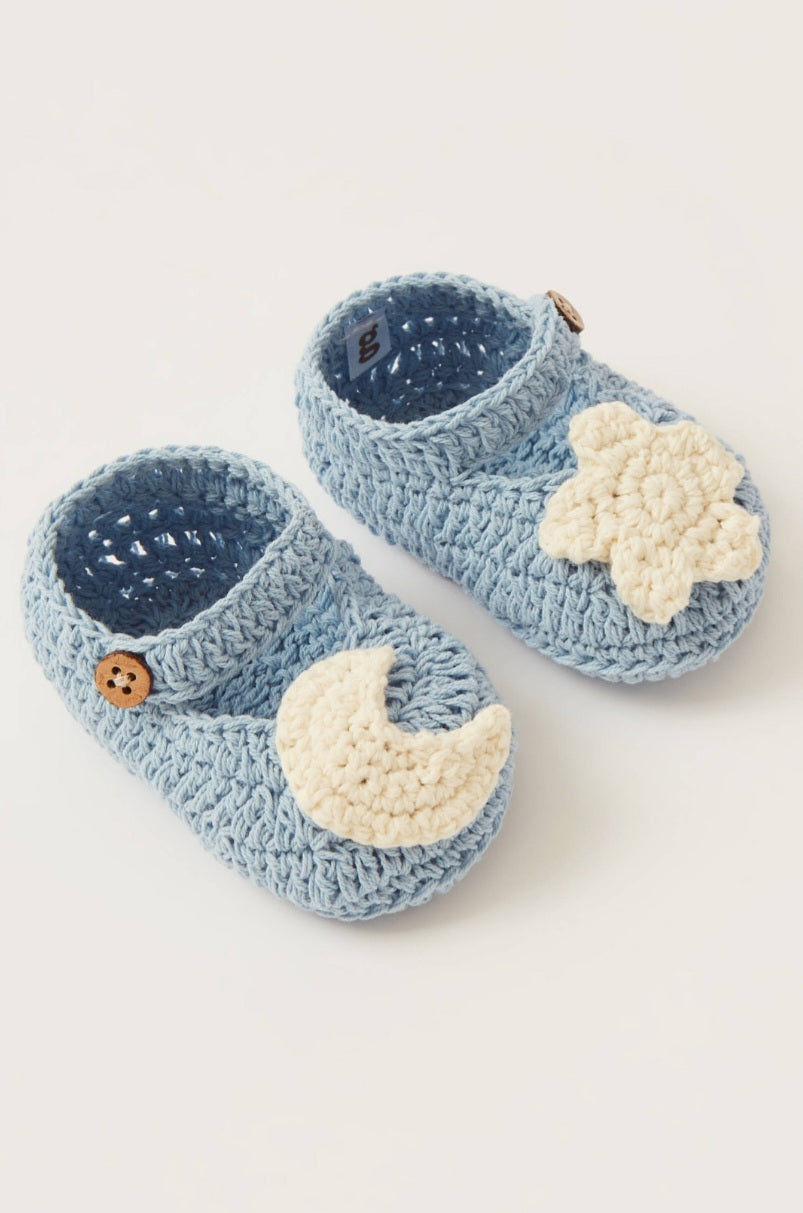 Giggles knitted moon & flower infant booties (Box Packaging)