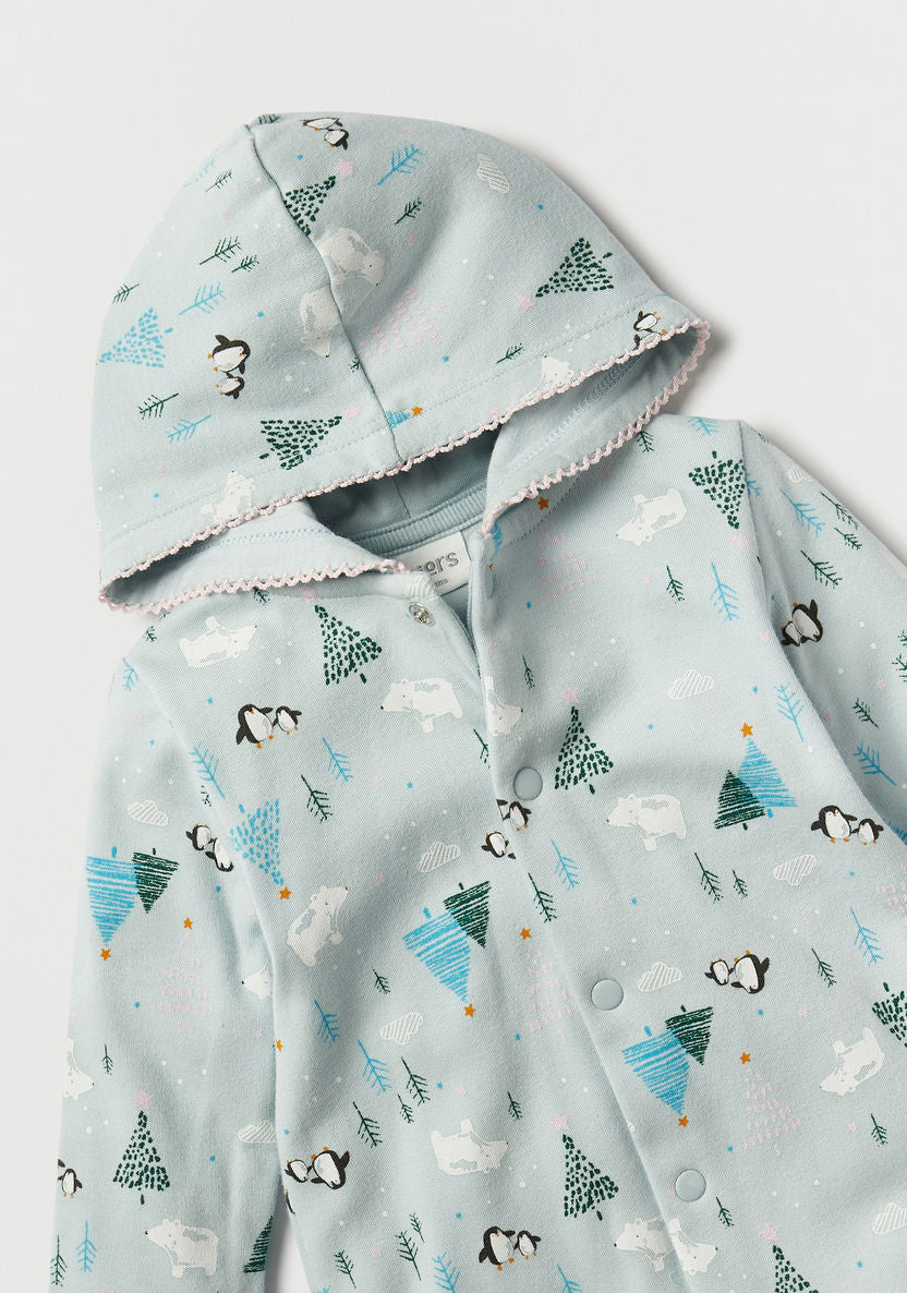 Juniors Penguin printed padded hooded openfeet sleepsuit (Winter)