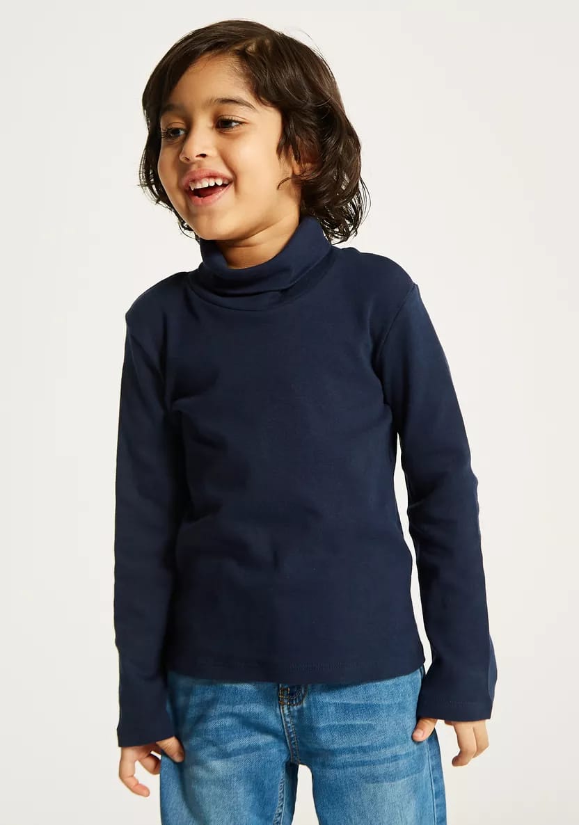 Junior solid turtle neck(blue) T-shirt with long sleeves (Winter)
