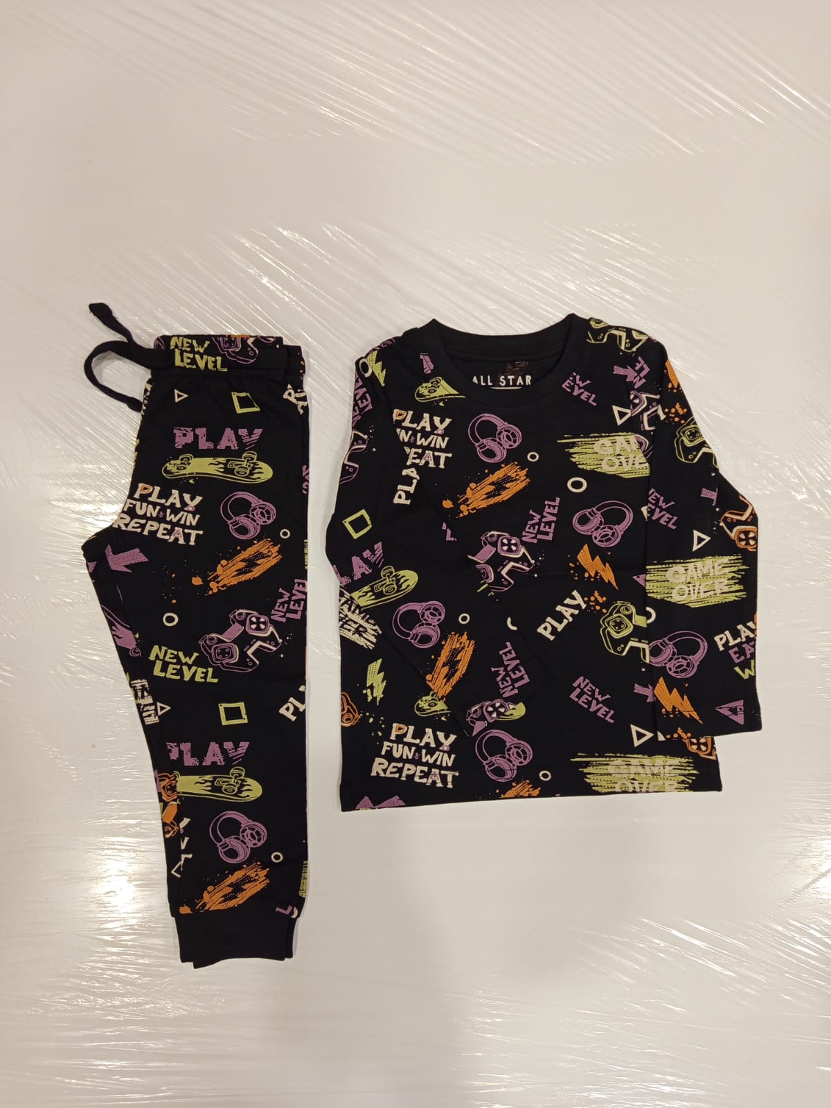 Juniors black gamer shirt & Pyjama set (set of 2)