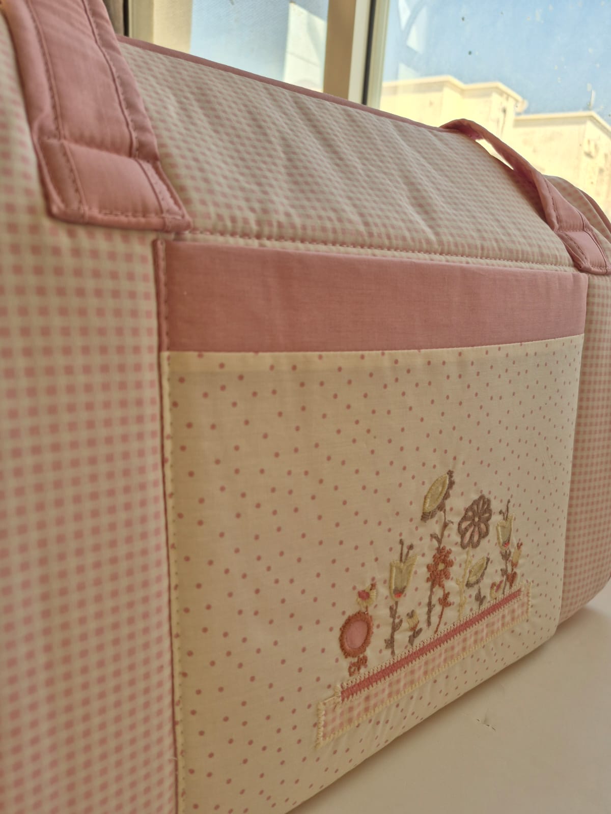 Cambrass Pink Flower embroidered Diaper Bag with Zip Closure