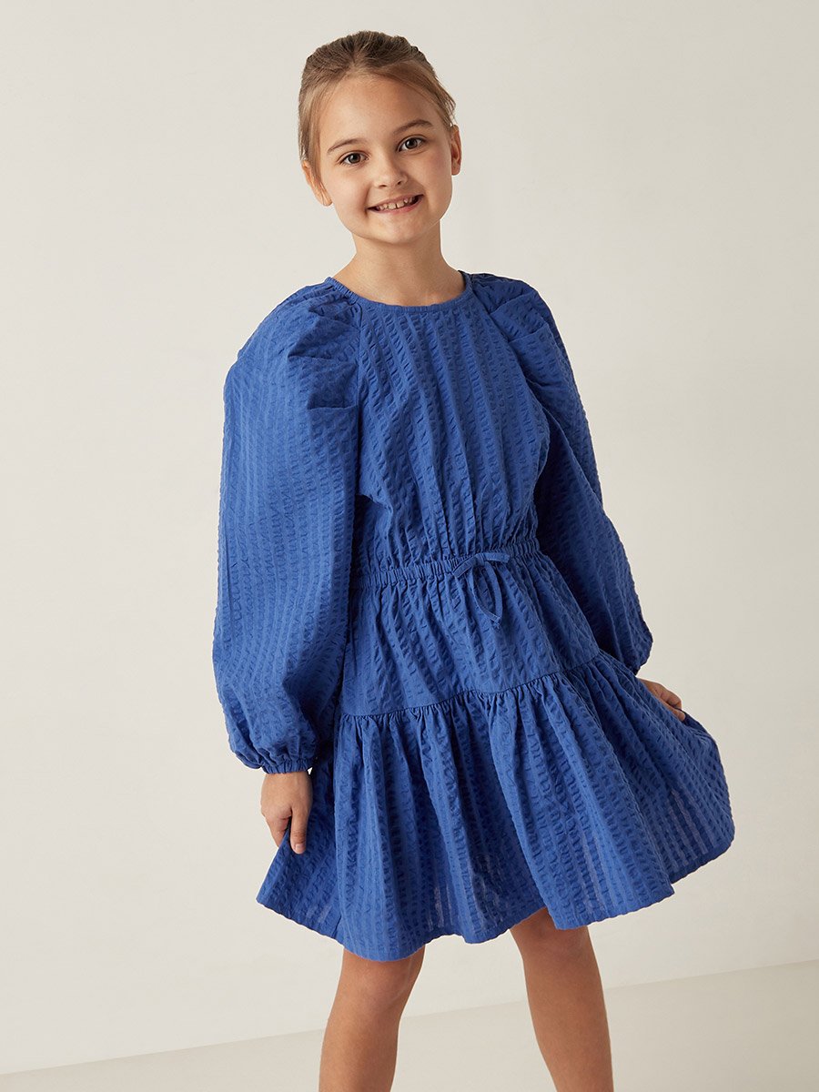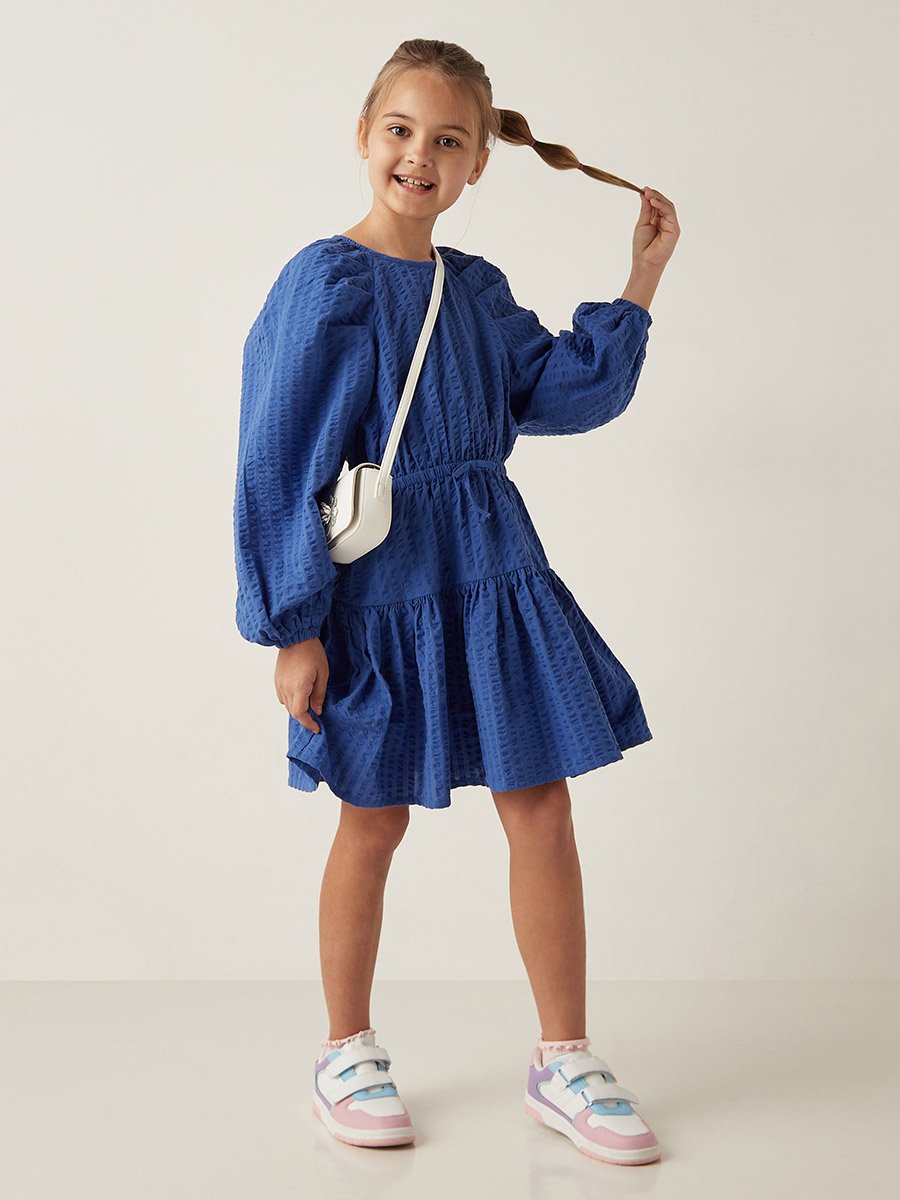 Juniors blue textured frill frock