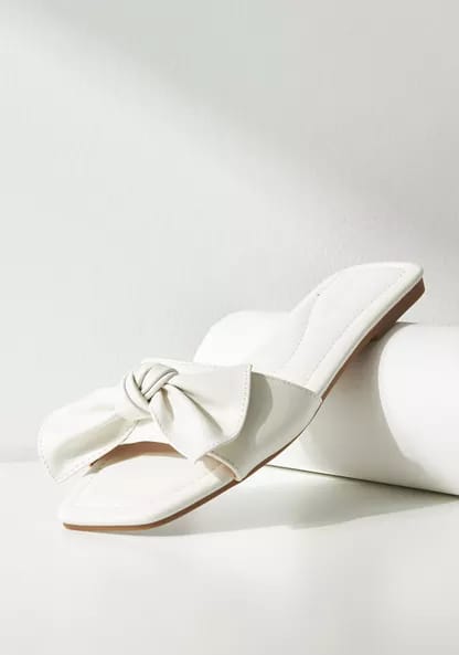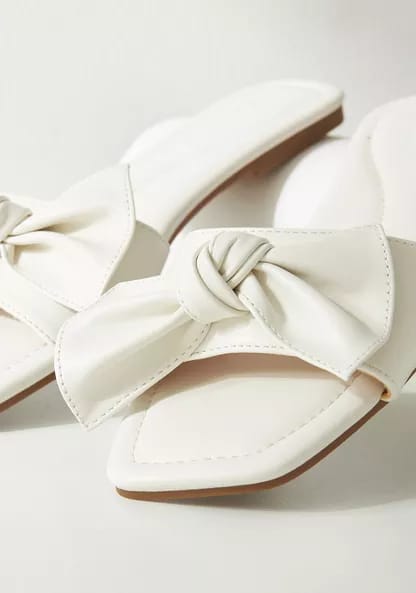 Max white bow slide sandals