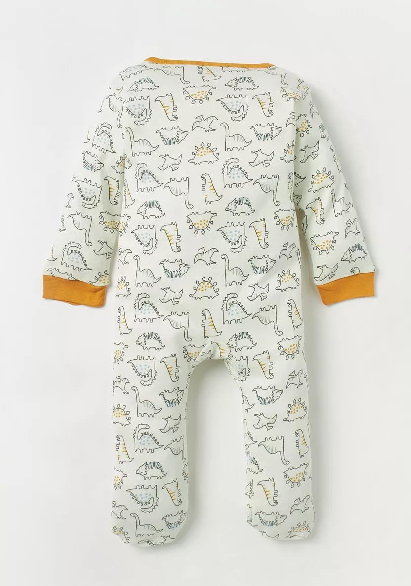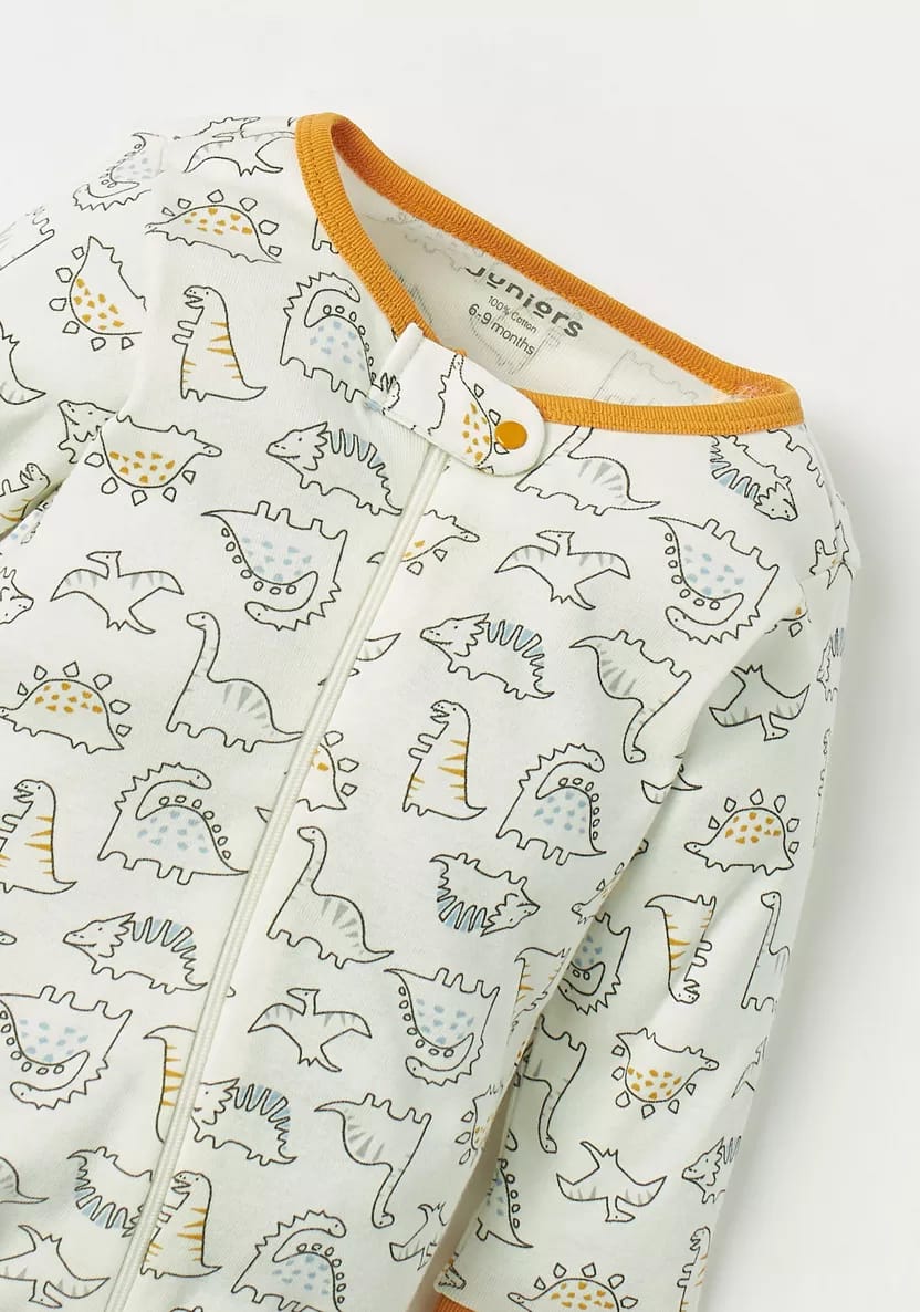 Juniors all over dino print zipped sleepsuit