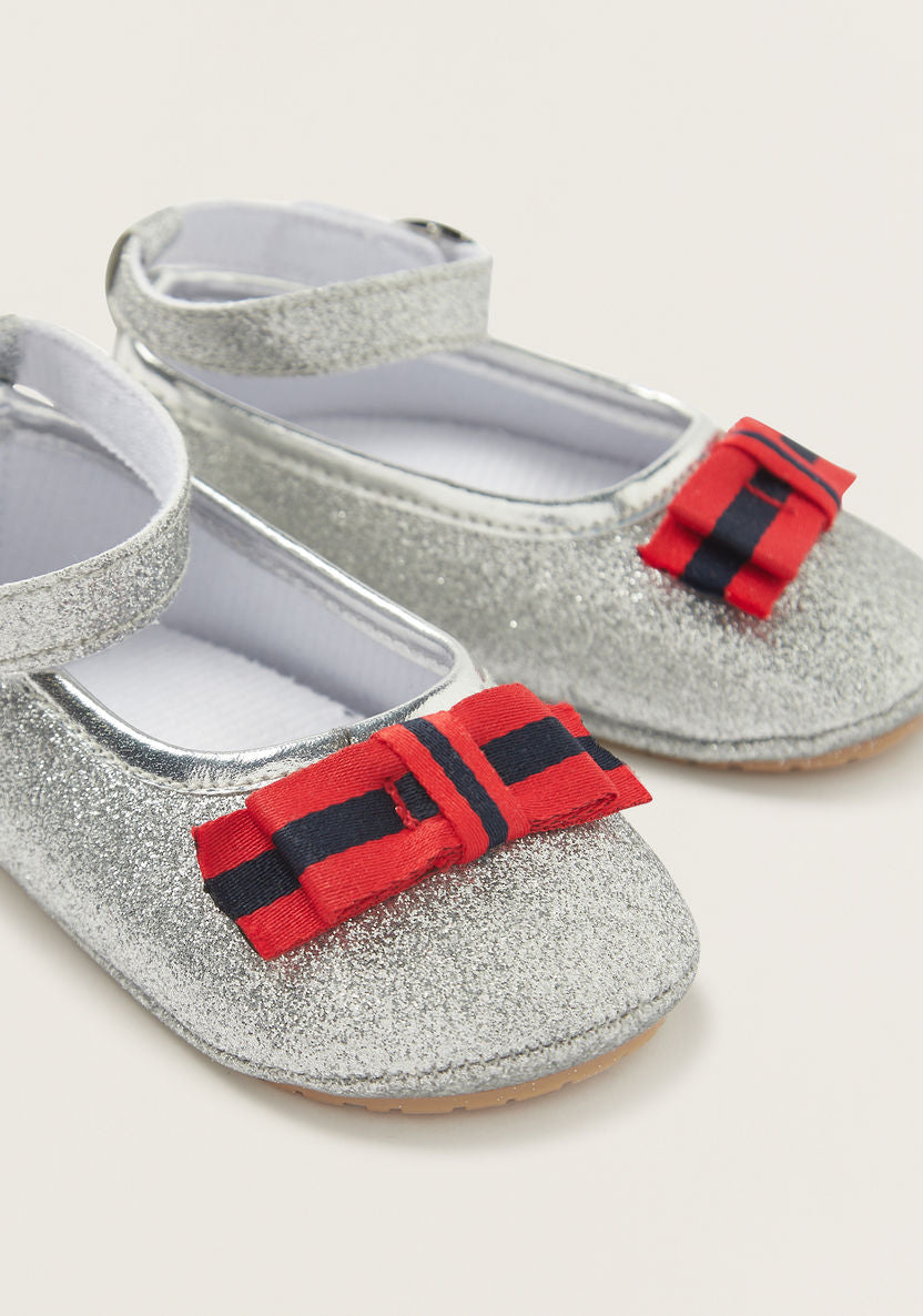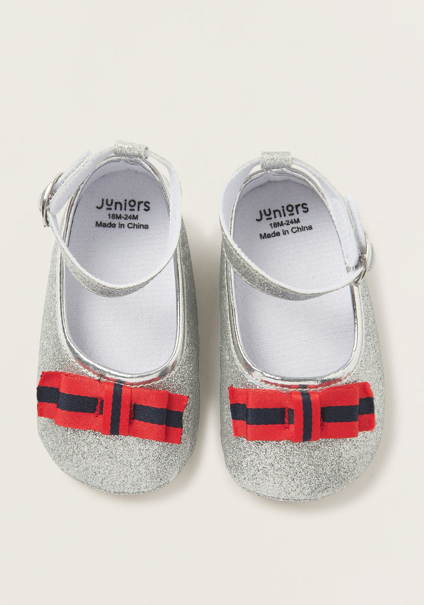 Juniors Glitter Detail infant ballerina shoes with Buckle Closure and Bow