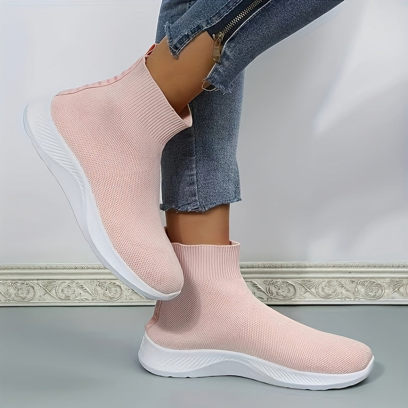Shoexpress pink textured high slip on shoes